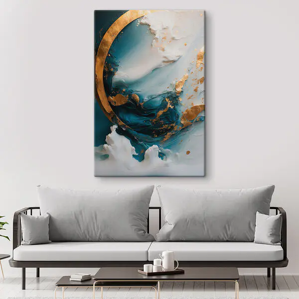 25.01 €15.00 €Canvas Schilderijen Azuren golven en amberkleurige bollen dansen