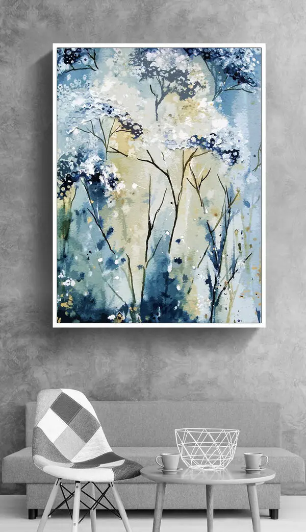 25.01 €15.00 €Canvas Schilderijen Een schilderij van een wit met blauwe plant