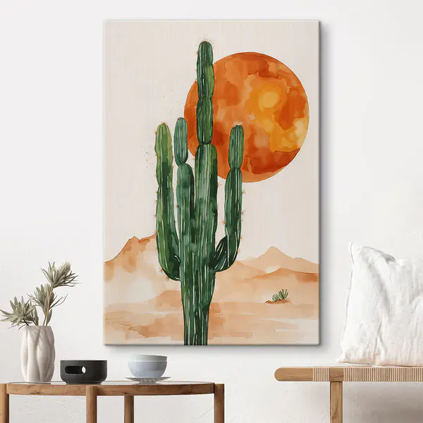 25.01 €15.00 €Canvas Schilderijen Schilderij van een cactus en een zon