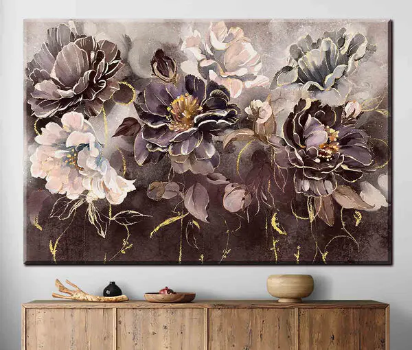 25.01 €15.00 €Canvas Schilderijen Een schilderij van bloemen op een muur