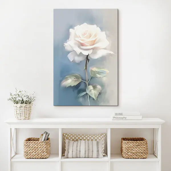 25.01 €15.00 €Canvas Schilderijen Witte roos met groene bladeren