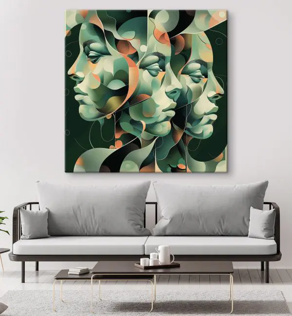 30.01 €18.00 €Canvas Schilderijen Gezichten vermengden zich in surrealistische kunstzinnigheid