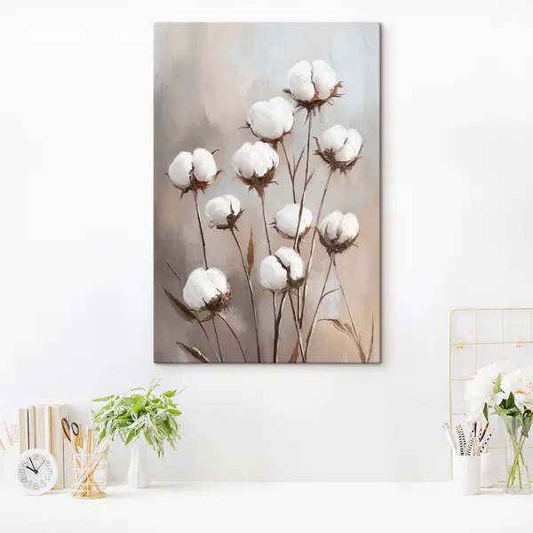 25.01 €15.00 €Canvas Schilderijen Katoen bloeit in zachte elegantie