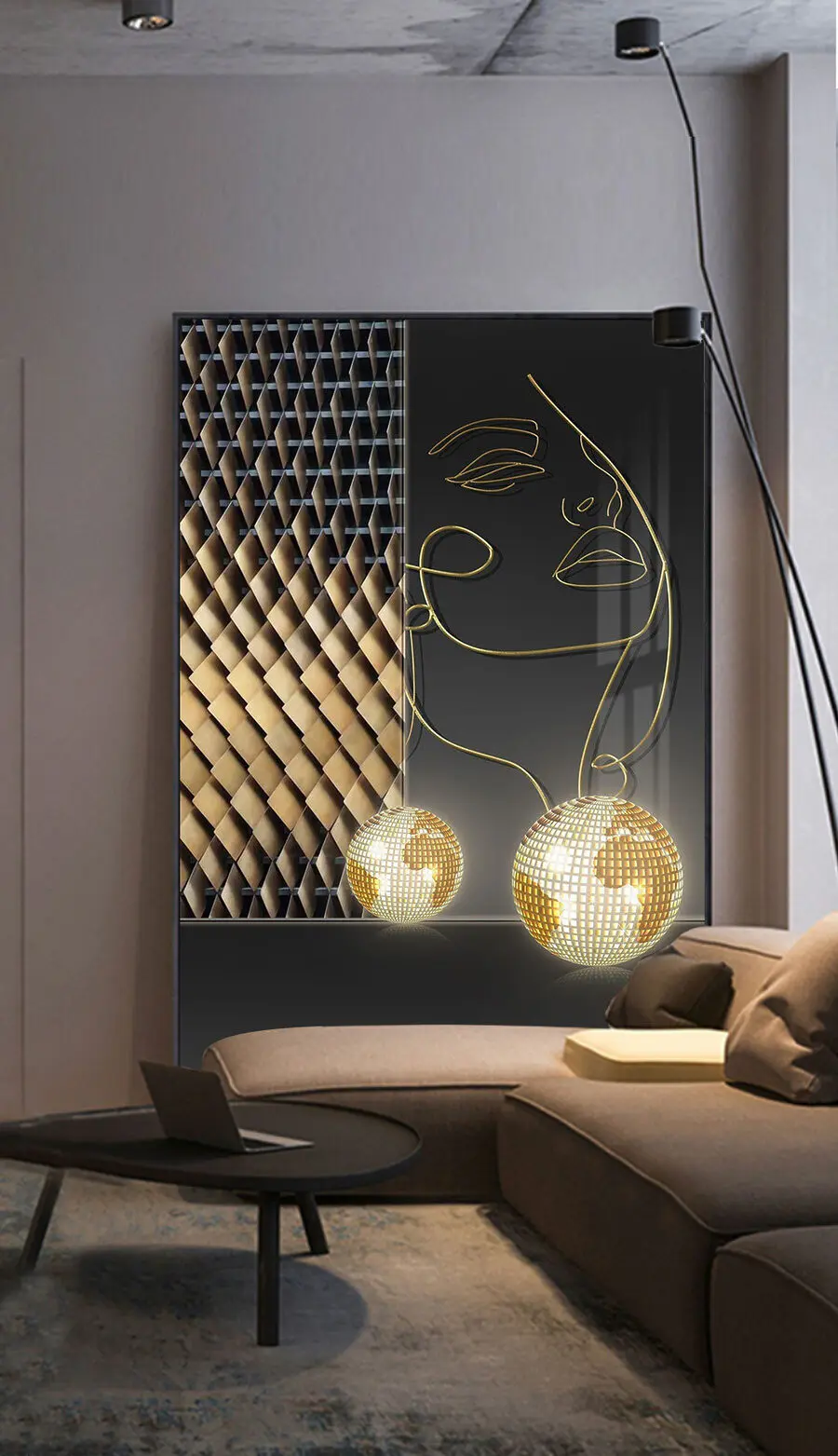 Canvas Schilderijen Artistieke illusie: gezicht en glinsterende lichten