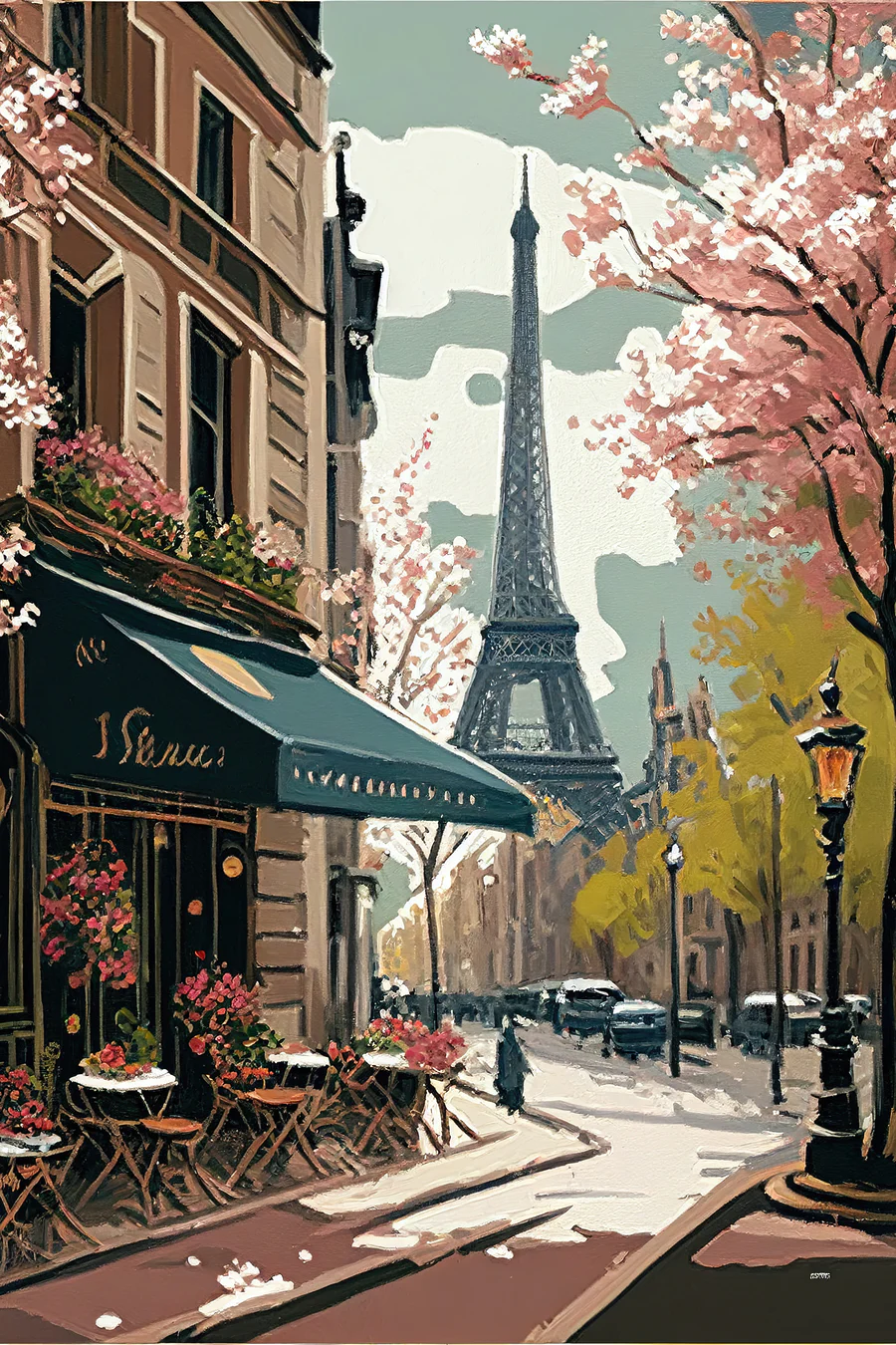 Verplaats jezelf naar een charmante Parijse straat met deze prachtige canvasprint. Stel je voor: gezellige cafés langs het pad, delicate roze bloesems die het tafereel omlijsten en in de verte die iconische toren die door de wolken piept. Het is het soort kunstwerk dat uitnodigt tot dagdromen en gesprekken aanwakkert op een luie middag. Stel je voor dat je koffie drinkt, omringd door warm zonlicht en het vage geklets van vrienden - klinkt heerlijk, toch? Dit kunstwerk brengt een stukje magie van de stad in elke ruimte, perfect om je muren die verrukkelijke toets te geven die iedereen zal bewonderen.