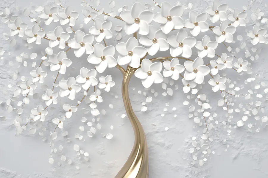 Canvas Schilderijen Een boom met witte bloemen en bladeren