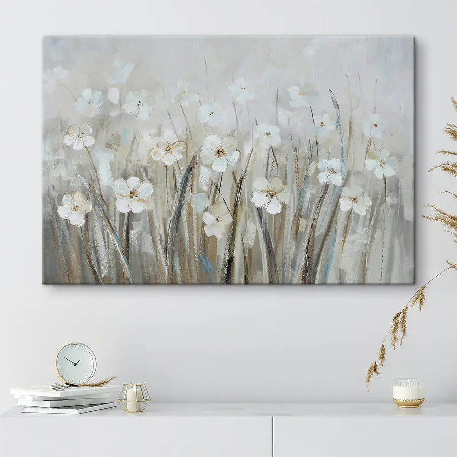 25.01 €15.00 €Canvas Schilderijen Een schilderij van bloemen in een veld