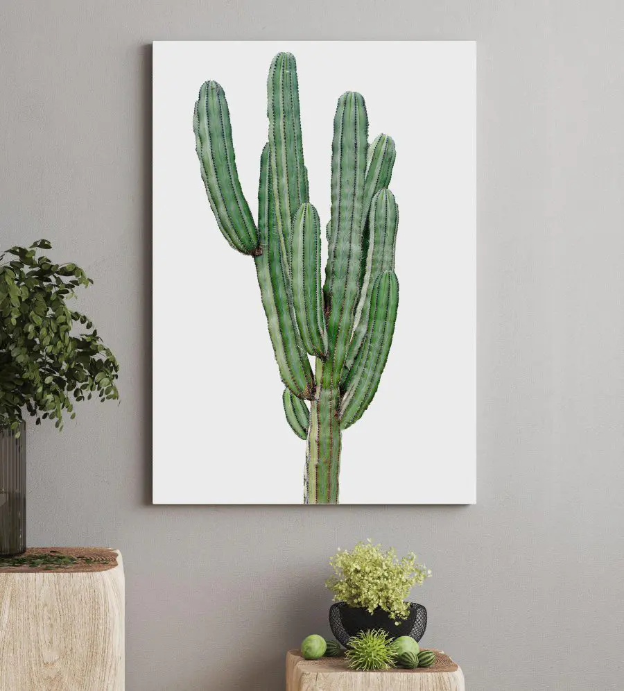 Canvas Schilderijen Cactus met lange dunne groene stengels