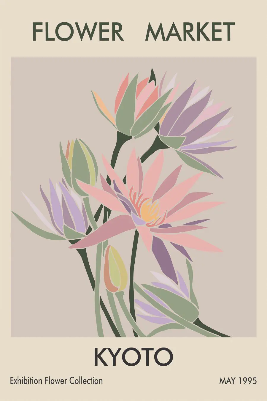 Stel je voor dat je een kamer binnenloopt en je meteen rustig voelt, alsof je in een pastelkleurige dagdroom bent gestapt. Dat is de magie van de "Elegant Blooms Display". Dit doek viert de delicate dans van bloemblaadjes in zachte tinten, perfect voor elke ruimte die hunkert naar een vleugje gratie van de natuur. Het is net alsof je je eigen kleine bloemenmarkt hebt - water geven is niet nodig! Plaats het over je bank of in een gezellig leeshoekje en zie hoe het de sfeer rustig verandert. Het is als een fluistering van de bloemencharme van Kyoto, die je dag met elke blik opfleurt.
