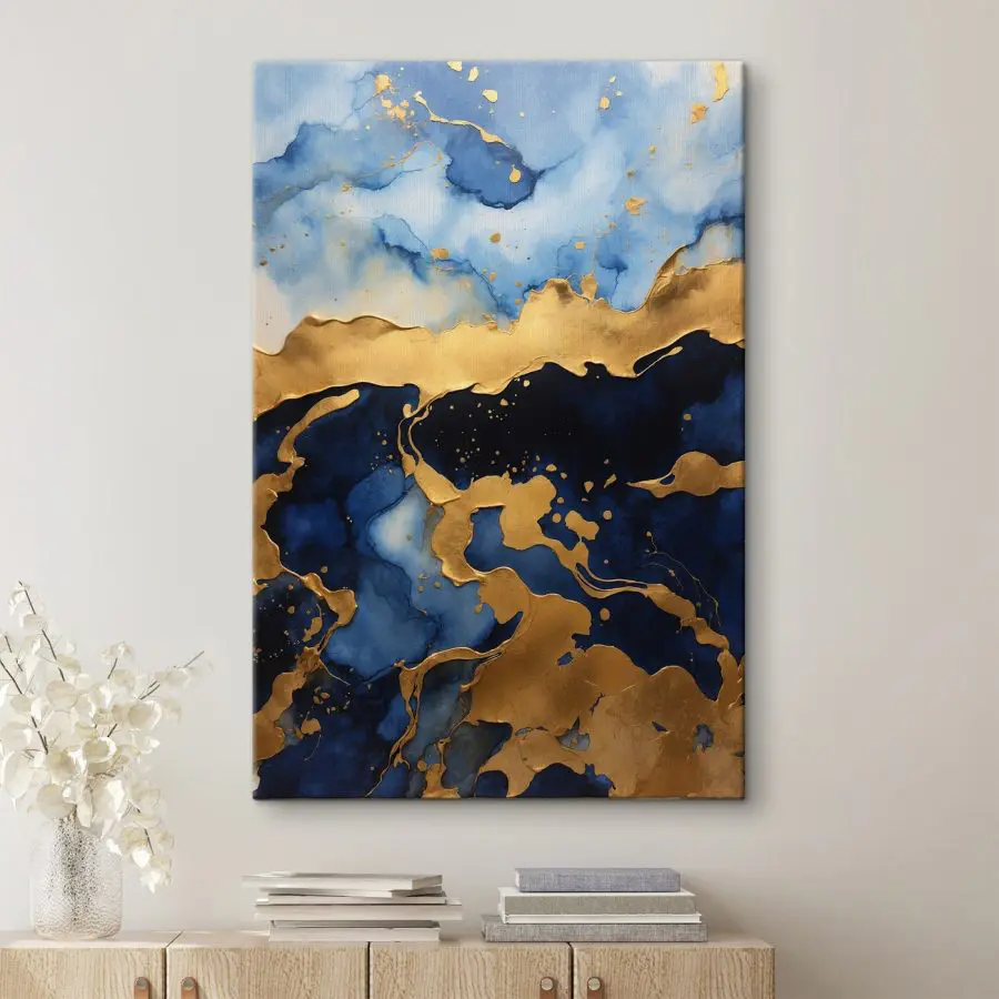 Canvas Schilderijen Azuren stromen ontmoeten metalen contouren