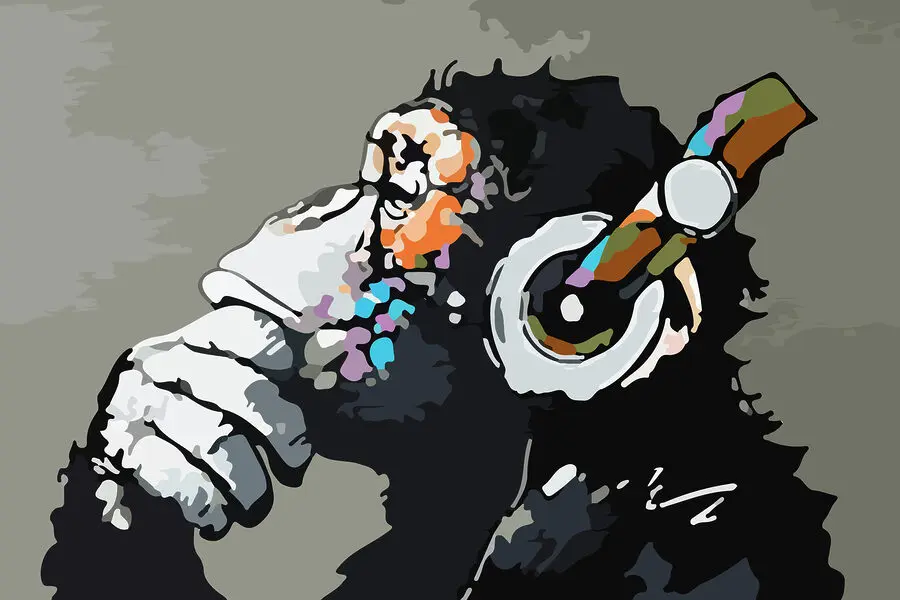 25.01 €15.00 €Canvas Schilderijen Een groep apen met koptelefoons en hoodies