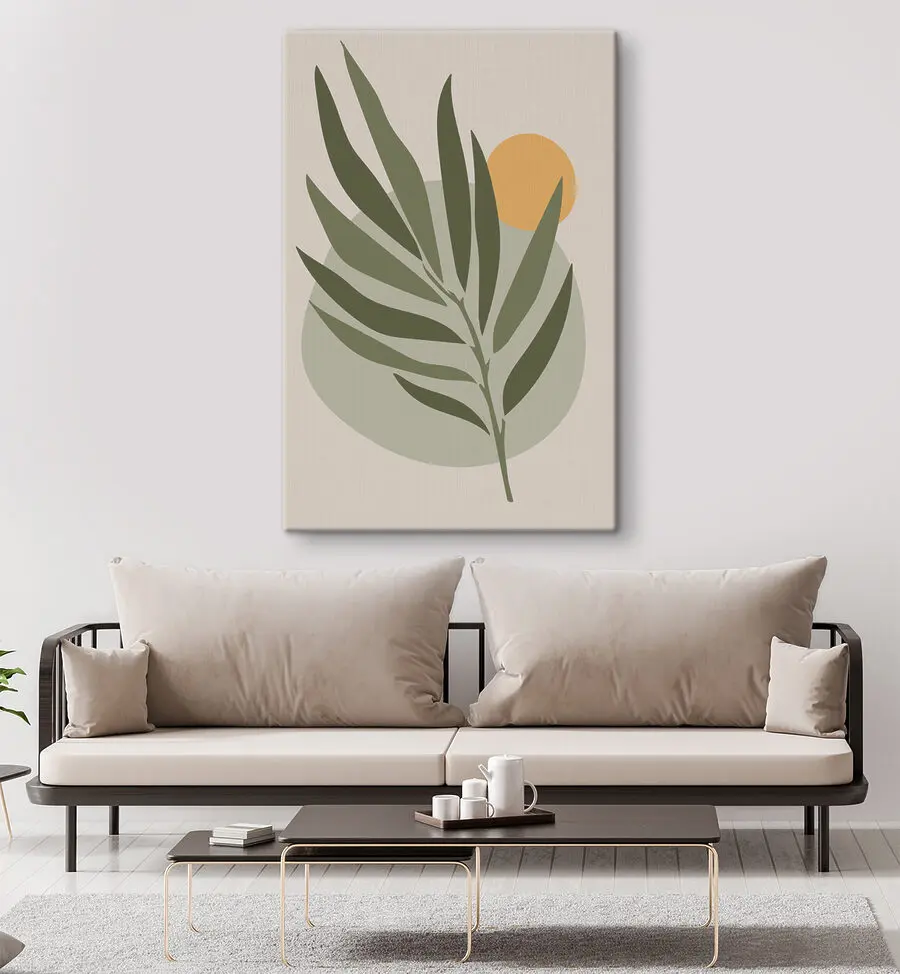 Fleur je kamer op met deze prachtige canvasprint met een groen blad tegen een vrolijke gele cirkel. Het is alsof de natuur heeft besloten om met kleuren te spelen en het resultaat is gewoonweg charmant. Stel je dit stuk voor aan de muur van een woonkamer - het springt in het oog en voelt verfrissend aan, als een koel briesje op een warme dag. Perfect voor mensen die hunkeren naar een vleugje boho of een vleugje flora in hun huis. Het is niet alleen maar decoratie; het is een stukje vreugde dat gesprekken losmaakt op luie zondagen of onder het genot van een kopje koffie. Ga je gang, laat het wat natuur vibes naar binnen brengen!