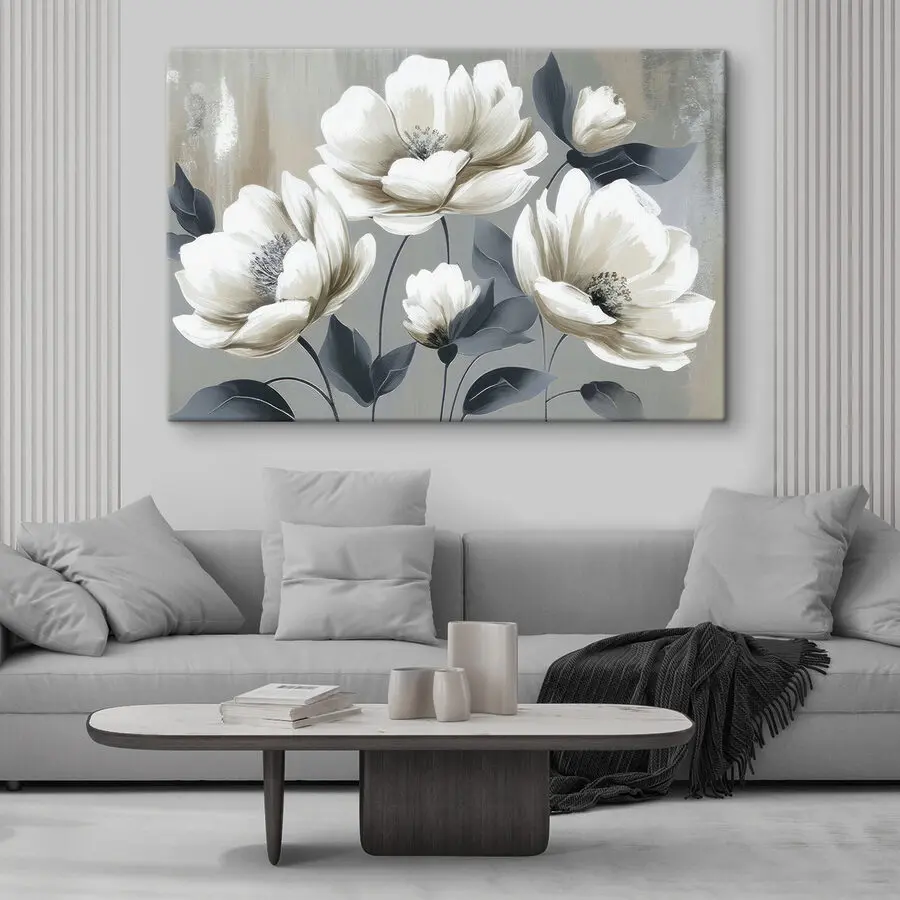 25.92 €14.25 €Canvas Schilderijen Elegante bloemendans in monochrome tinten