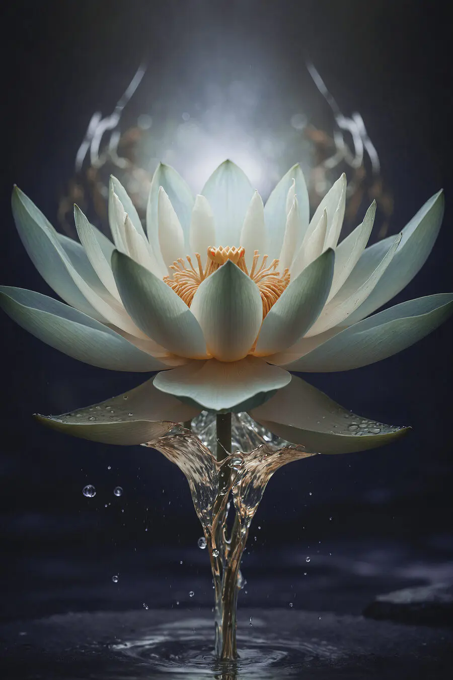 Canvas Schilderijen Een witte bloem met geel hart en water dat eruit spat
