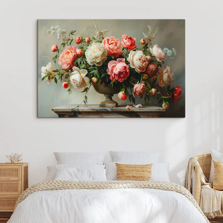 Canvas Schilderijen Een vaas met roze en witte bloemen