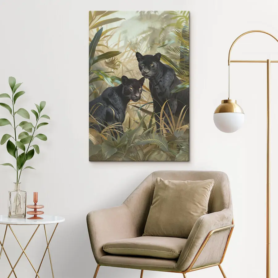Canvas Schilderijen Twee zwarte tijgers in de jungle