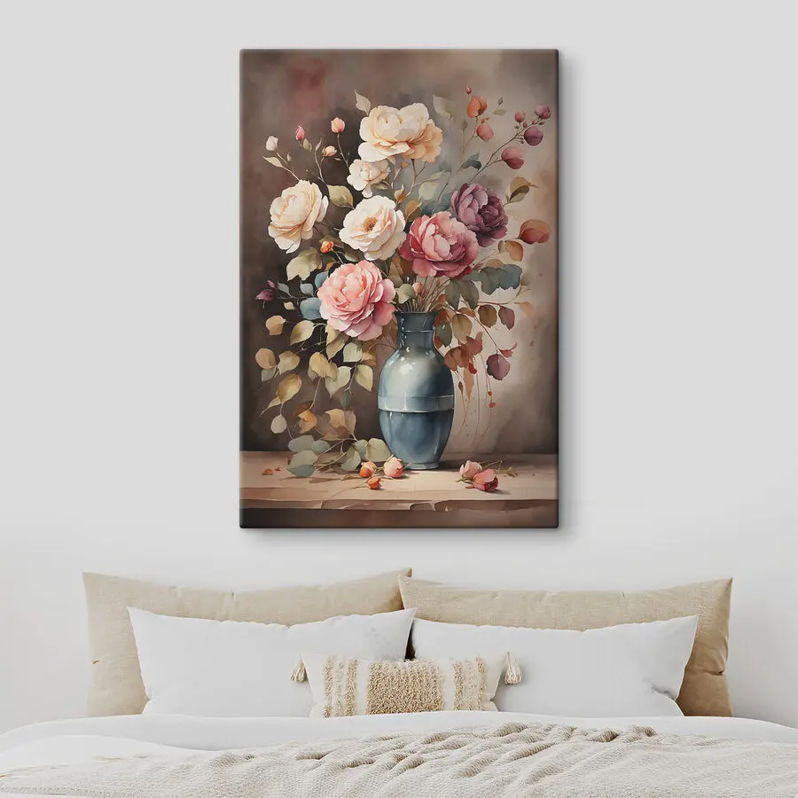 Canvas Schilderijen Schilderij van bloemen in een vaas