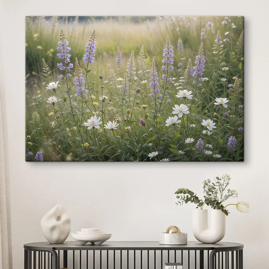 Stel je voor dat je een veld vol wilde bloemen binnenstapt telkens als je je kamer binnenstapt. Deze canvasfolie "Bloemenveld" doet precies dat. Het tafereel is doordrenkt met zachte pasteltinten en frisse bloemen die je de frisse ochtendlucht laten ruiken. Het heeft die chille vibe maar voelt toch aan alsof de natuur je muren een warme, bloemige knuffel heeft gegeven. Perfect voor iedereen die behoefte heeft aan frisse lucht zonder de deur uit te hoeven. Het is alsof je luiert in een rustige weide - zonder allergieën! Een heerlijke manier om de sereniteit van het buitenleven binnen te halen.