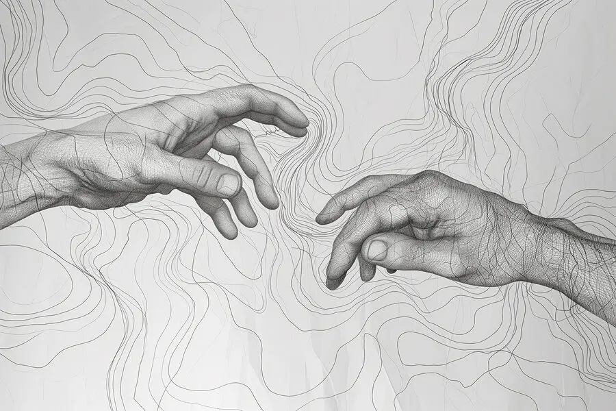 Canvas Schilderijen Tekening van elkaar rakende handen