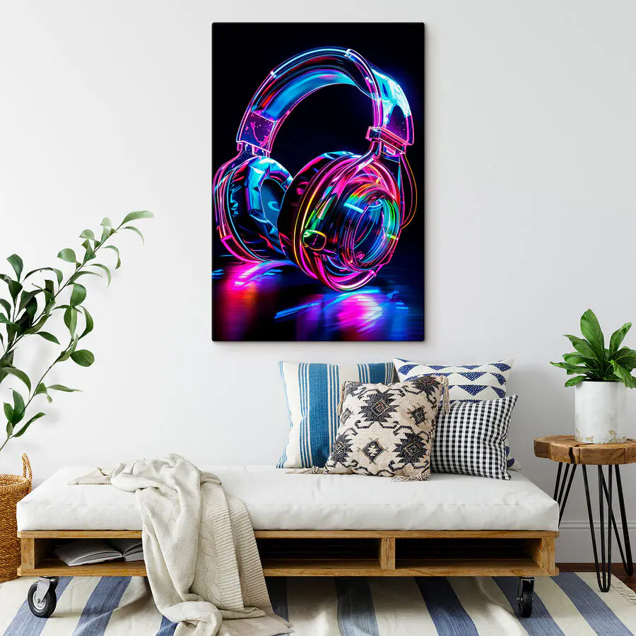 Canvas Schilderijen Kleurrijke hoofdtelefoon op zwarte achtergrond