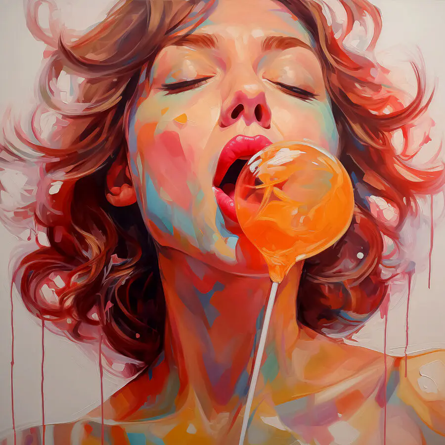 Hier is een afdruk op canvas die zeker in het oog zal springen: "Vrouw met rood haar en een lolly. Dit werk danst tussen abstract en beeldende kunst. Stel je deze gewaagde print voor in je woonkamer of op die lege muur in je kantoor - meteen een gespreksonderwerp! De levendige kleuren en de speelse, bijna brutale vibe hebben een unieke charme. Je kunt niet anders dan glimlachen als je ernaar kijkt. Het is gewoon leuk! Stel je voor dat er vrienden op bezoek komen en iemand ziet het van de andere kant van de kamer - dan vraag je meteen: "Wow, waar heb je dat vandaan?". Met de levendige kleuren en een vleugje eigenzinnigheid geeft deze print een uitbarsting van energie. En wie houdt er niet van een knipoog naar het eenvoudige plezier van een lolly? Niets is zoeter.