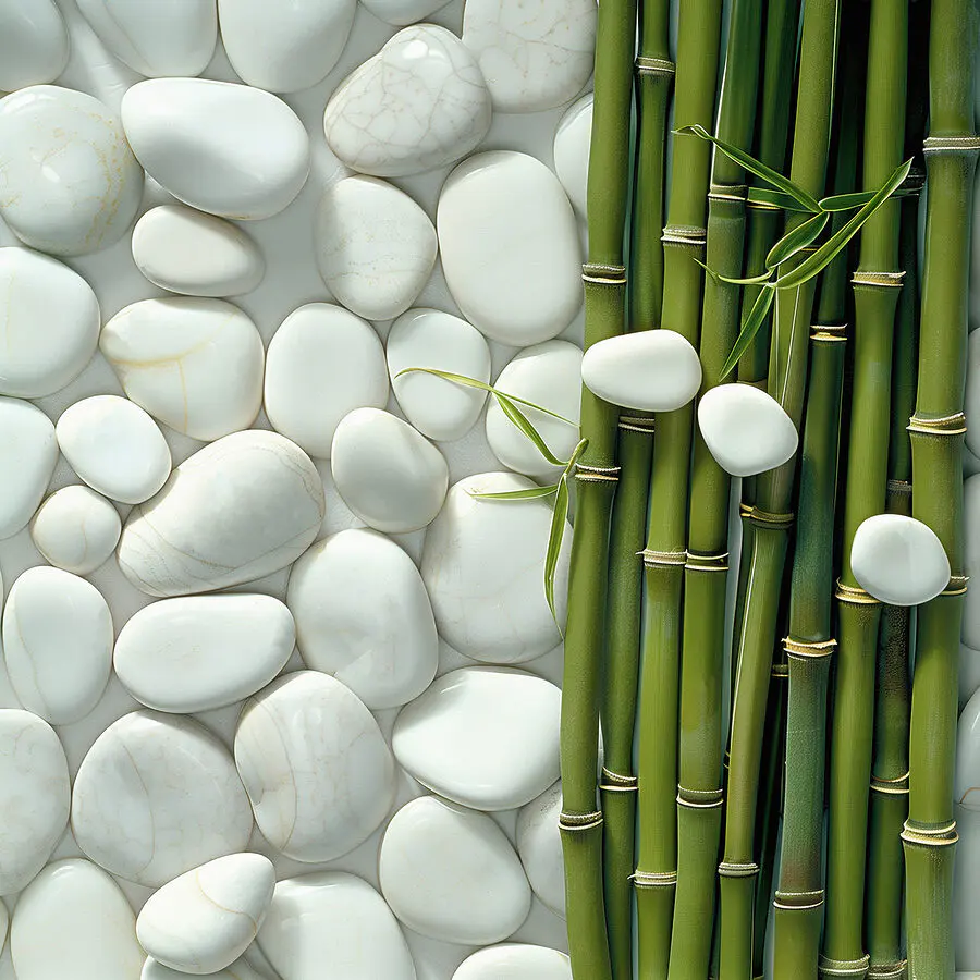 Canvas Schilderijen Groep groene bamboestengels en witte rotsen