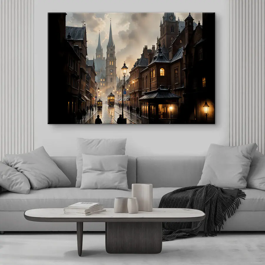Imagine hanging "Canvas Schilderijen Street with Buildings and a Train" right in your living room. It's like inviting a little slice of urban chic into your home. This print just has that vibe—where architecture meets adventure! The way the buildings tower, almost whispering stories of old, and the train chugs along like it’s got somewhere important to be. It's perfect for city lovers or anyone dreaming of bustling streets while sipping morning coffee in their pajamas. It feels like a journey that'll make any space buzz with life!