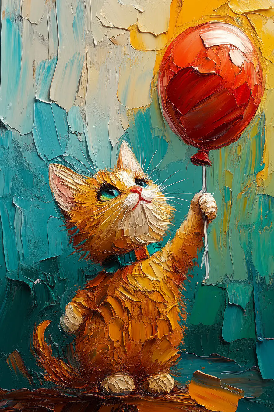 Canvas Schilderijen Schilderij van een kat met een ballon