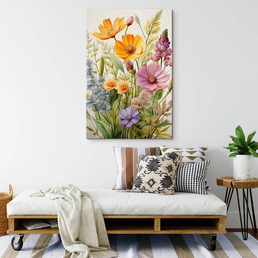 25.01 €15.00 €Canvas Schilderijen Een schilderij van bloemen in een veld