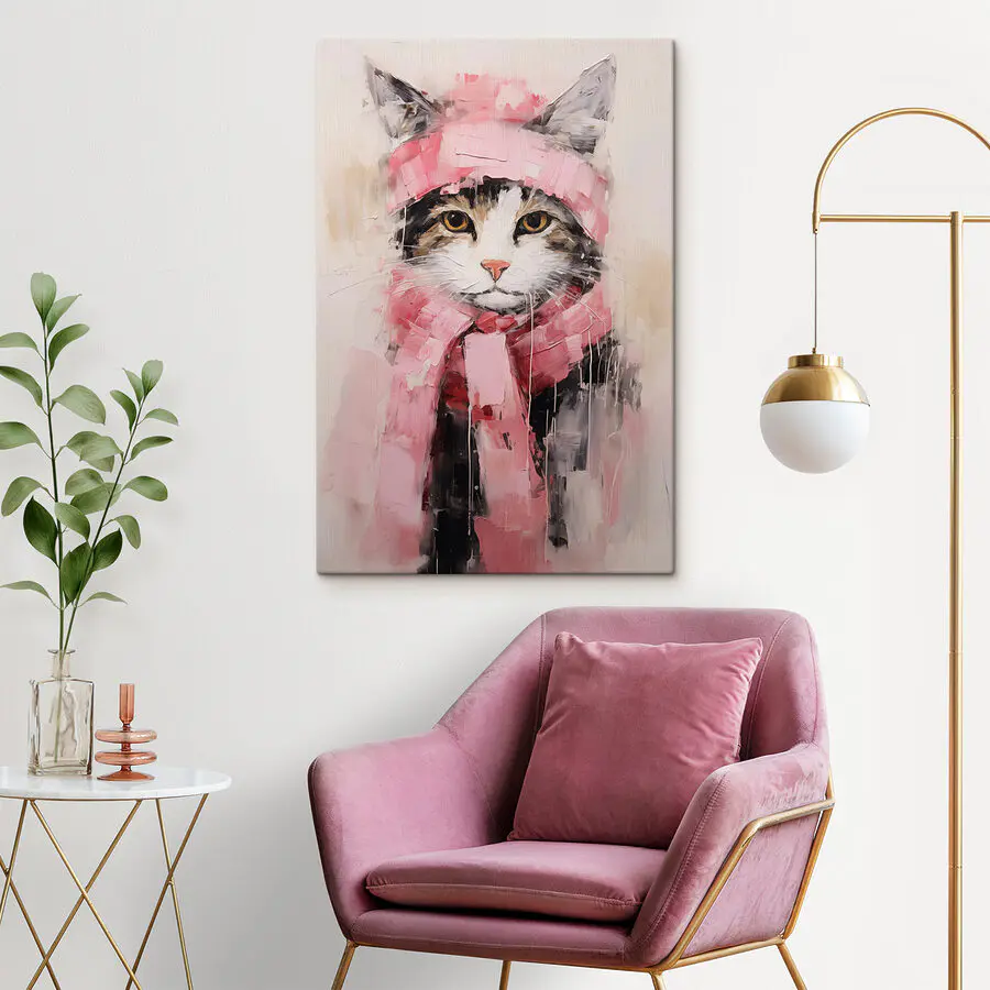 Canvas Schilderijen Schilderij van een kat met sjaal