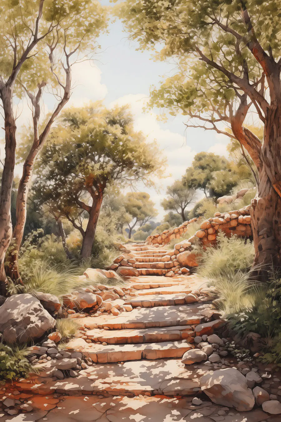 Canvas Schilderijen Stenen trap naar bomen