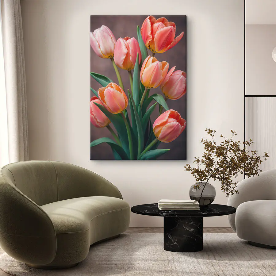 25.01 €15.00 €Canvas Schilderijen Een boeket tulpen in een glazen vaas