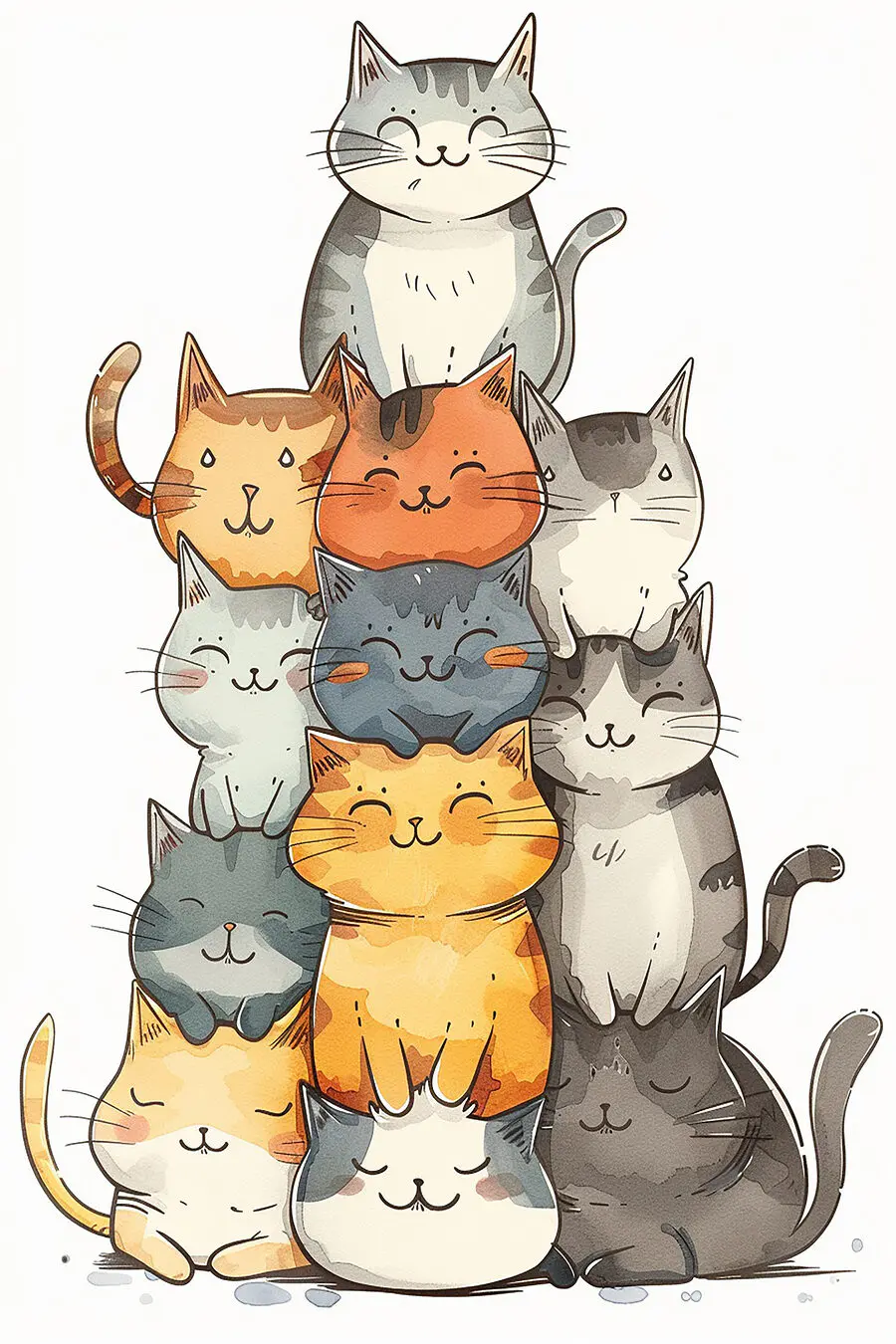 25.01 €15.00 €Canvas Schilderijen Een groep katten met verschillende kleuren