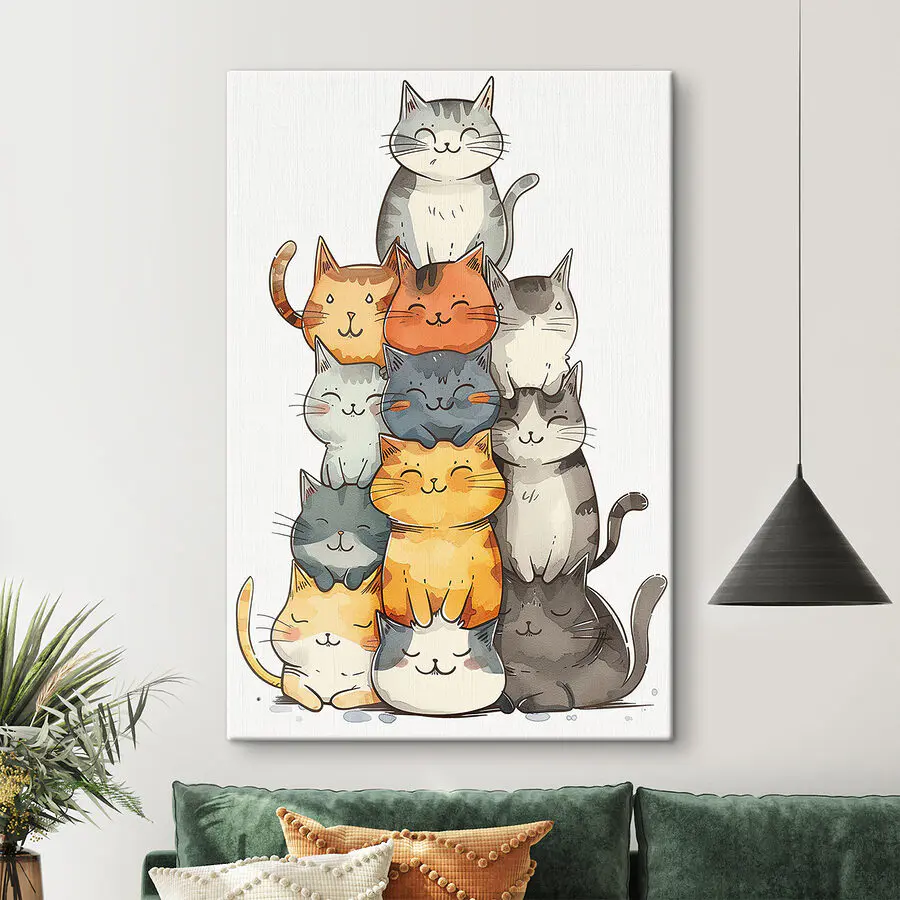 Canvas Schilderijen Groep katten op elkaar gestapeld