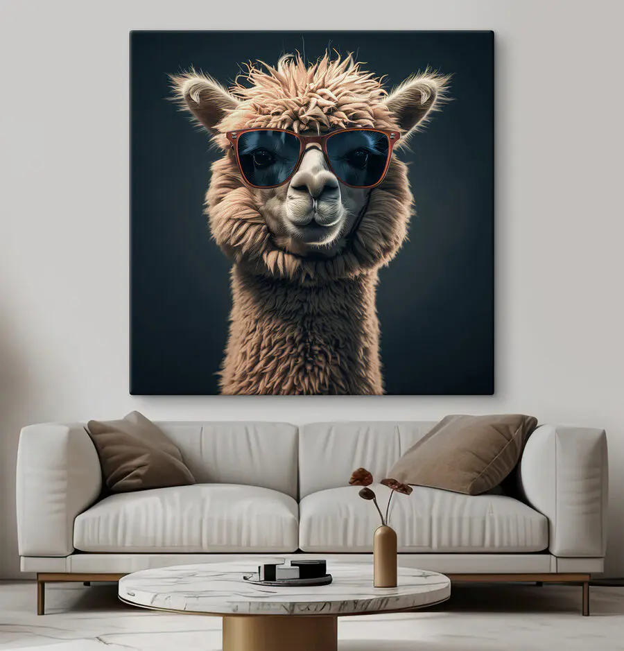 Maak kennis met het coolste dier aan je muur - de "Llama Wearing Sunglasses" canvas print! Deze stijlvolle lama heeft een houding die elke kamer doet opleven. Stel je voor dat je je woonkamer binnenloopt en daar staat deze funky lama, die charme en een gevoel voor avontuur uitstraalt. Het is alsof je kamer ineens een eigen coole factor heeft. Perfect voor de dagen dat je je een beetje ontspannen en eigenzinnig voelt. Of je nu een feestje hebt of een rustige zondagochtendkoffie, deze print zal zeker een glimlach of zelfs een grinnik ontlokken. Hou het levendig, toch?