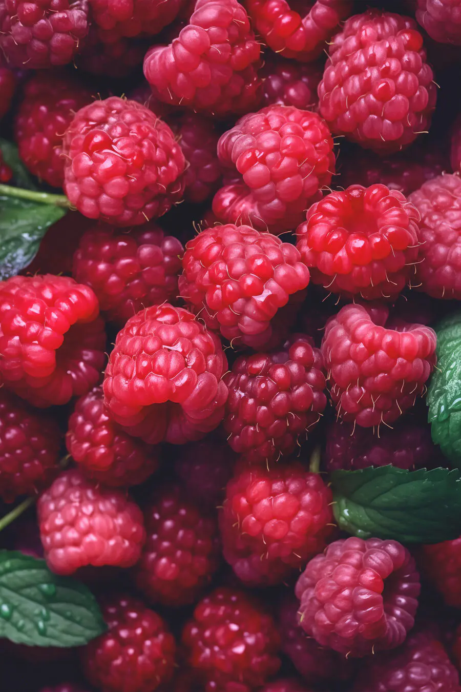 Canvas Schilderijen Stapel frambozen met bladeren