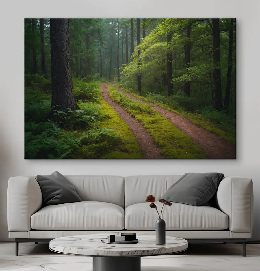 25.92 €14.25 €Canvas Schilderijen Schilderij van een bos met een pad en bomen
