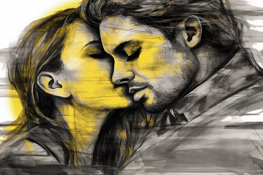 Canvas Schilderijen Man en vrouw zoenen