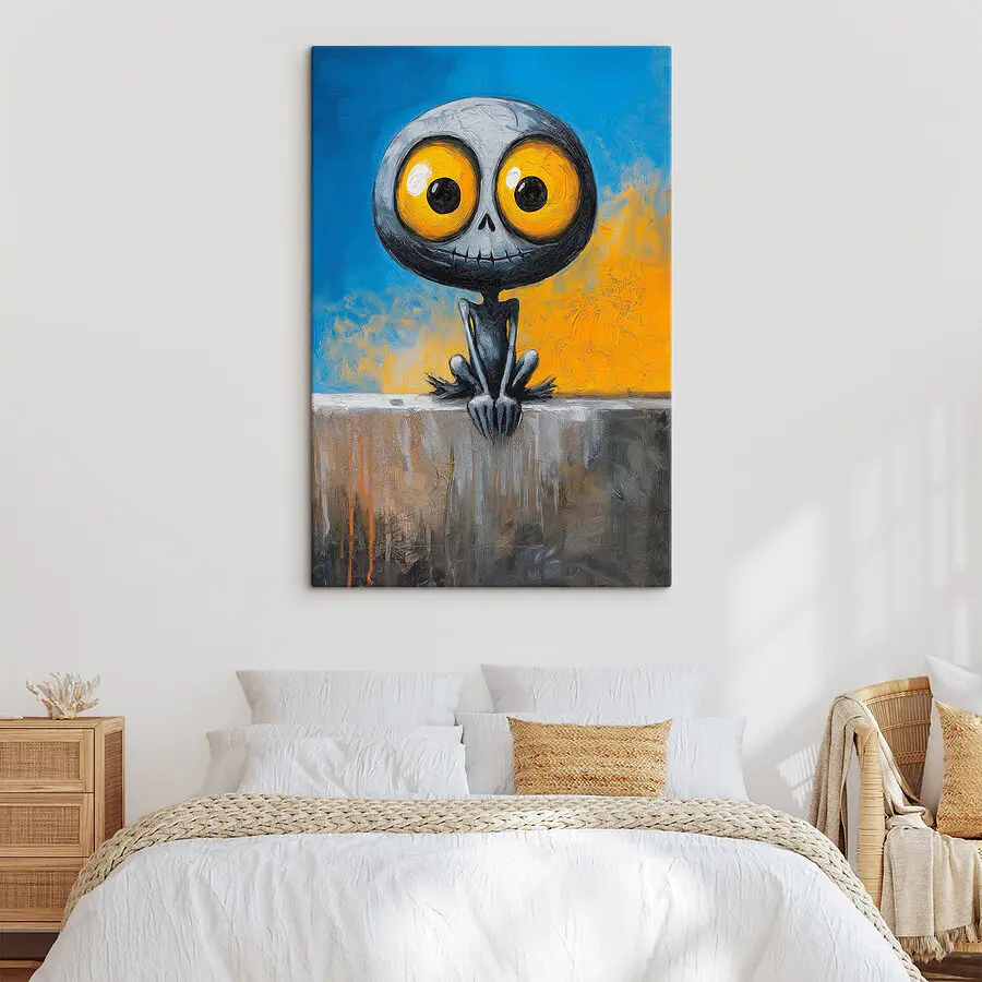 Canvas Schilderijen Stripfiguur zittend op een richel