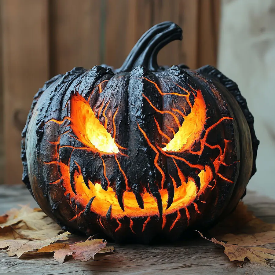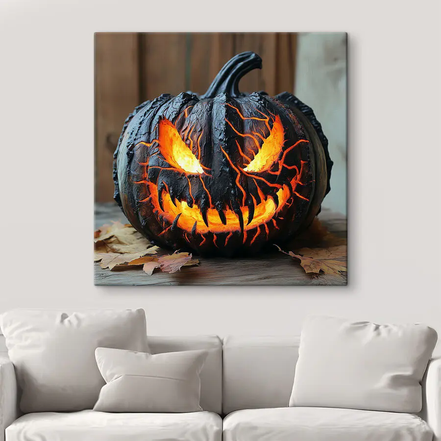 Canvas Schilderijen Gesneden pompoen met een gezicht en ogen