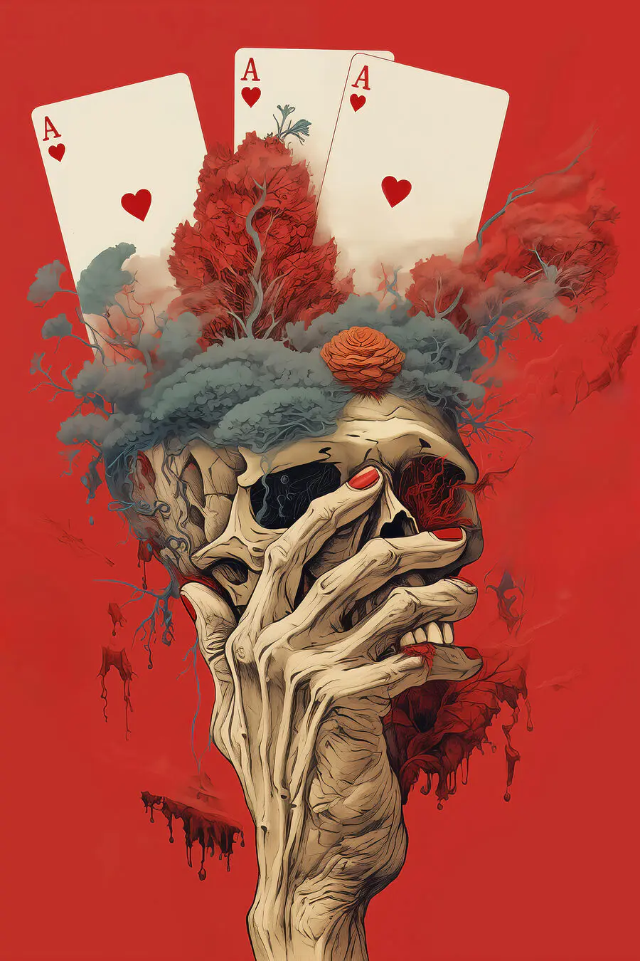 Dit wilde doek, "Skull with a Hand Covering its Face", is als een rebels gefluister aan je muur. Het is een beetje brutaal, een beetje mysterieus, met een kunstzinnige uitstraling die moeilijk te negeren is. Stel je voor dat deze schoonheid boven je bank hangt - gasten zullen misschien even stilstaan, hun hoofd schuin houden en zich afvragen wat het verhaal is. Het opvallende rood en de ingewikkelde details dansen een beetje met je ogen, nietwaar? Het is zeker een ijsbreker, die aanzet tot een praatje en misschien zelfs een beetje kattenkwaad. Een echt onvergetelijk stuk dat in stijl de regels aan zijn laars lapt.