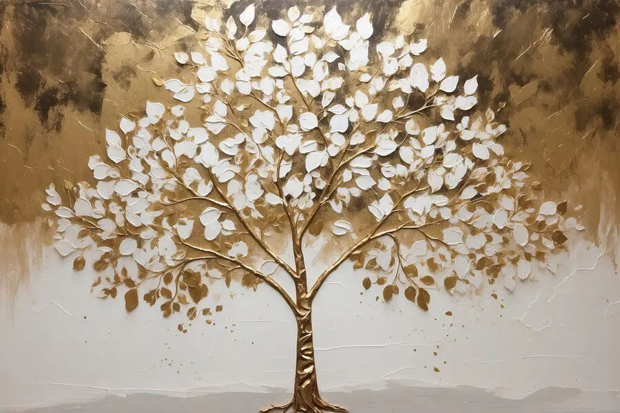Canvas Schilderijen Schilderij van een boom met witte bladeren