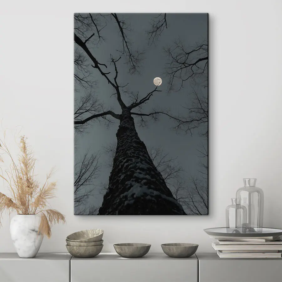 Canvas Schilderijen Boom met de maan op de achtergrond