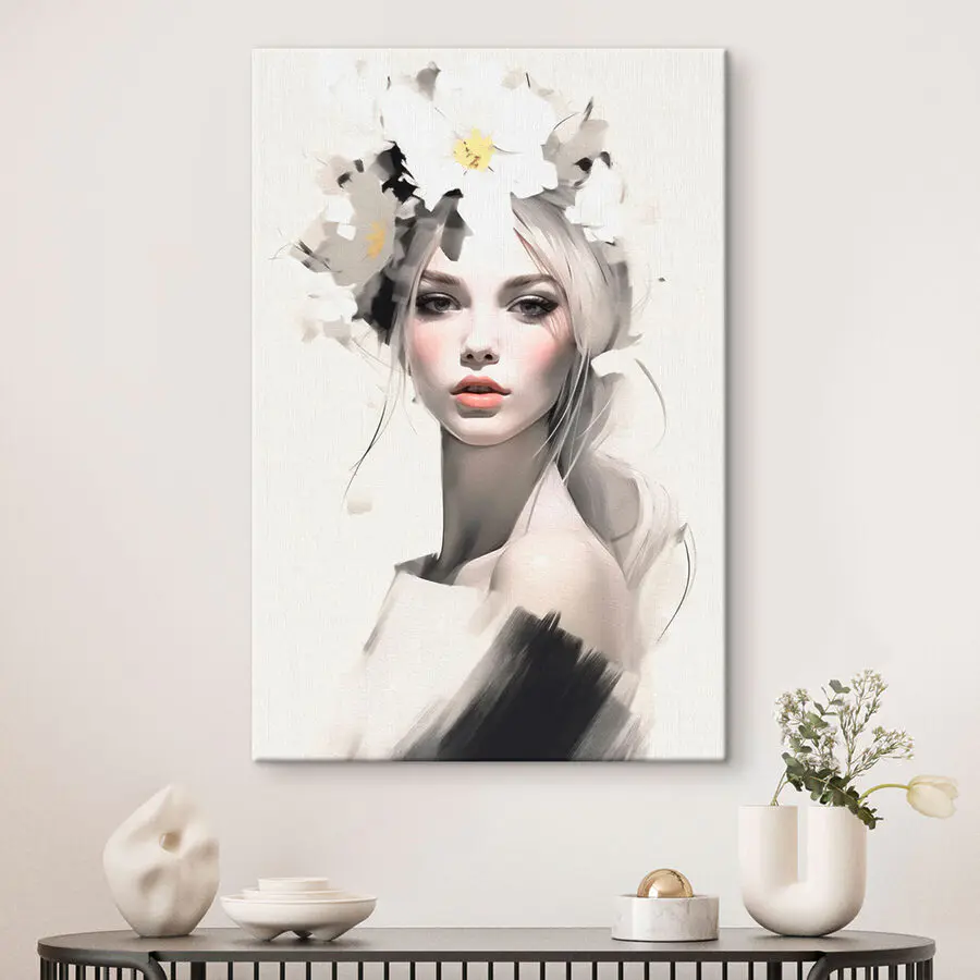 Canvas Schilderijen Vrouw met bloemen in haar haar