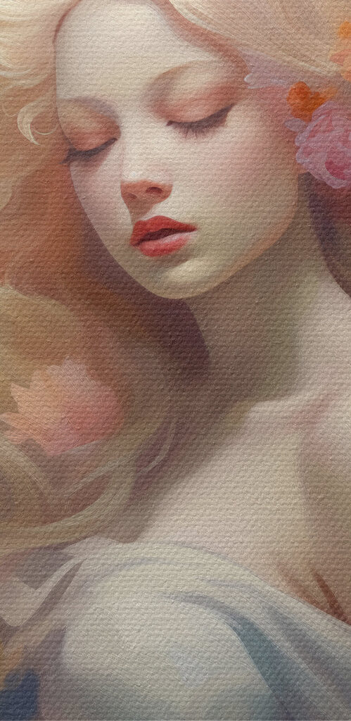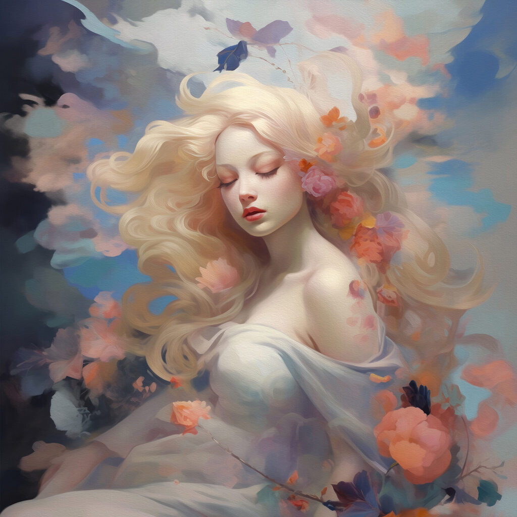 Canvas Schilderijen Vrouw met lang blond haar en bloemen in haar haar