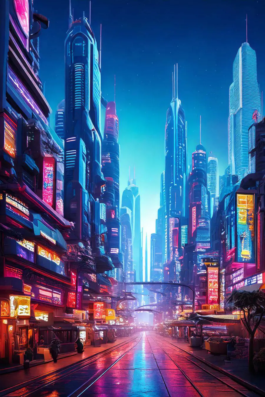 Stap in de toekomst met deze canvasprint, "Stadsstraat met veel hoge gebouwen". Het is alsof je door een stadsstraat wandelt waar de wolkenkrabbers bijna de sterren aanraken. De levendige kleuren en dromerige lichten voelen levendig aan, bijna bruisend van energie. Stel het je voor in je woonkamer en voeg een stukje stedelijke magie toe. Perfect voor die avonden dat je wilt ontsnappen naar een bruisend stadslandschap zonder het lawaaierige verkeer. Het is architectuur, kunst en een gespreksonderwerp in één. Wie wist dat muren zo groot konden dromen?
