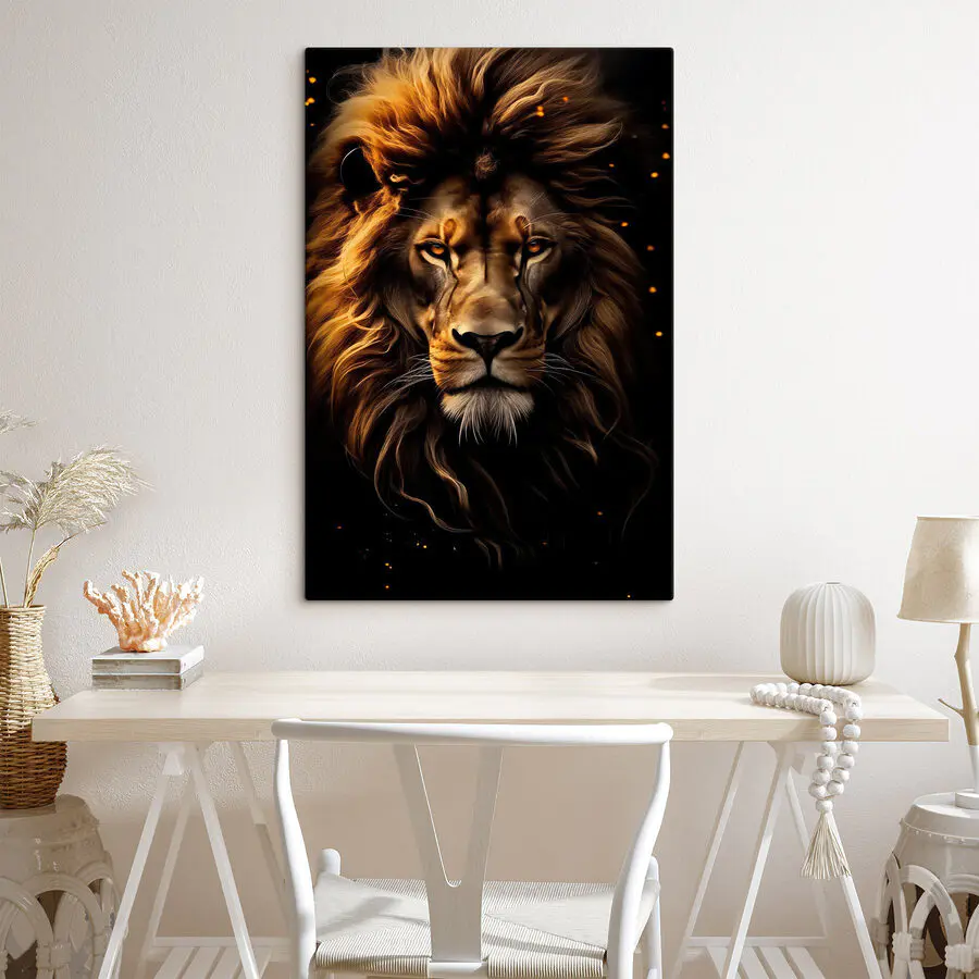 Breng een vleugje wild in huis met deze prachtige canvasprint van een leeuw met majestueuze manen die waarschijnlijk de show zou stelen op elke familiebijeenkomst. Stel je voor dat het in je woonkamer hangt en dat de rijke kleuren en woeste blik gesprekken op gang brengen die uren kunnen duren. Het is niet zomaar kunst; het is een sfeermaker. Deze woeste katachtige voelt bijna levend aan en herinnert iedereen er zachtjes aan om hun innerlijke gebrul te omarmen. Perfect voor mensen die van de natuur houden of gewoon een stuk willen dat hen een stoer gevoel geeft. Voeg wat textuur en leven toe aan je muren, want wie zou zijn ruimte niet willen delen met zo'n opvallende koning van de jungle?