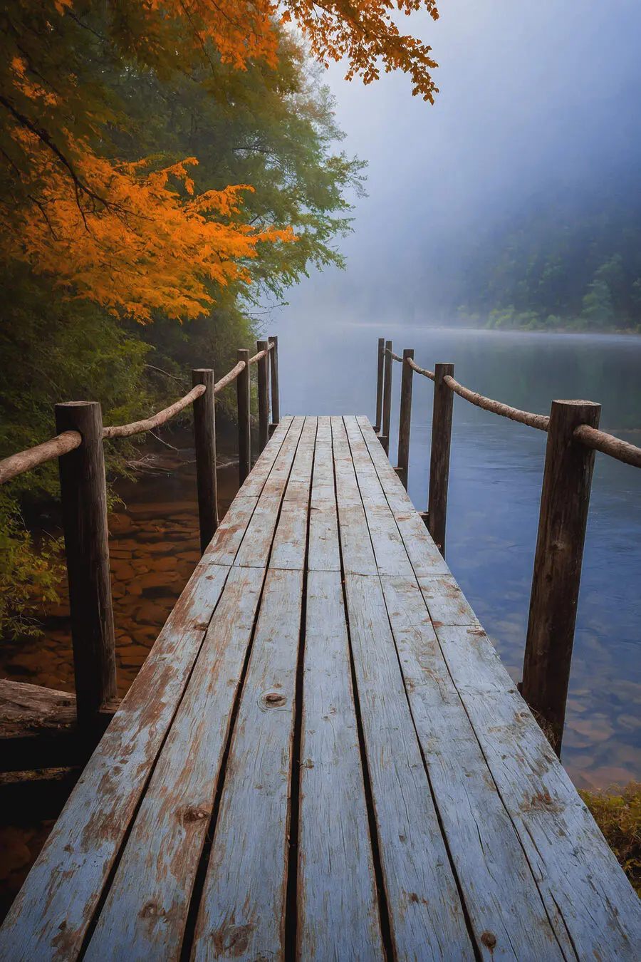 Canvas Schilderijen Houten steiger boven een waterlichaam