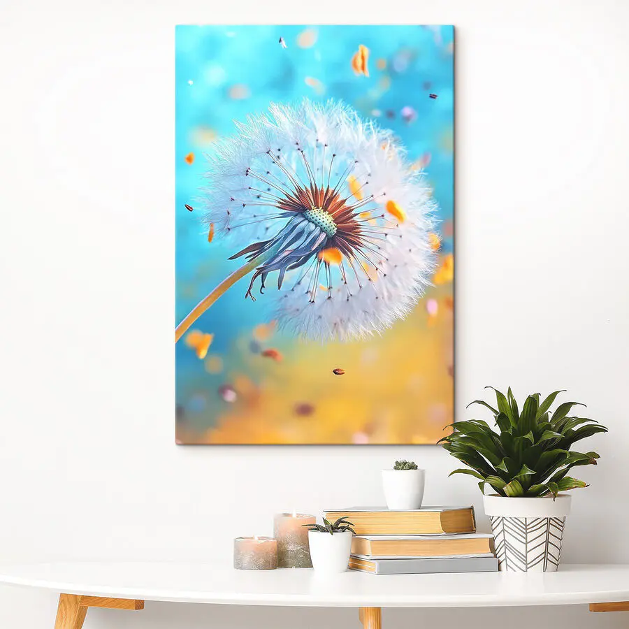 Stel je een zacht briesje voor dat de zachte wensen van paardenbloemzaadjes over een zonovergoten weide draagt. Deze prachtige canvasprint, "Dandelion with Seeds Flying in the Air", legt dat magische moment prachtig vast. De levendige kleuren dansen bijna van de muur af, waardoor elke blik aanvoelt als een vleugje frisse lucht. Perfect voor iedereen die een vleugje natuur in huis wil halen. Hang het op in een gezellig hoekje en plotseling voelt die ruimte levendiger aan, waardoor dagdromen over warme middagen en zorgeloze momenten ontluikt. Je zou zelfs kunnen glimlachen bij de gedachte aan kleintjes die paardenbloemen blazen en wensen doen in de wind. Ideaal voor bloemenliefhebbers, natuurliefhebbers of iedereen die een beetje eigenzinnigheid nodig heeft. Het is alsof je een stukje van het buitenleven naar binnen haalt - onkruid wieden is niet nodig!