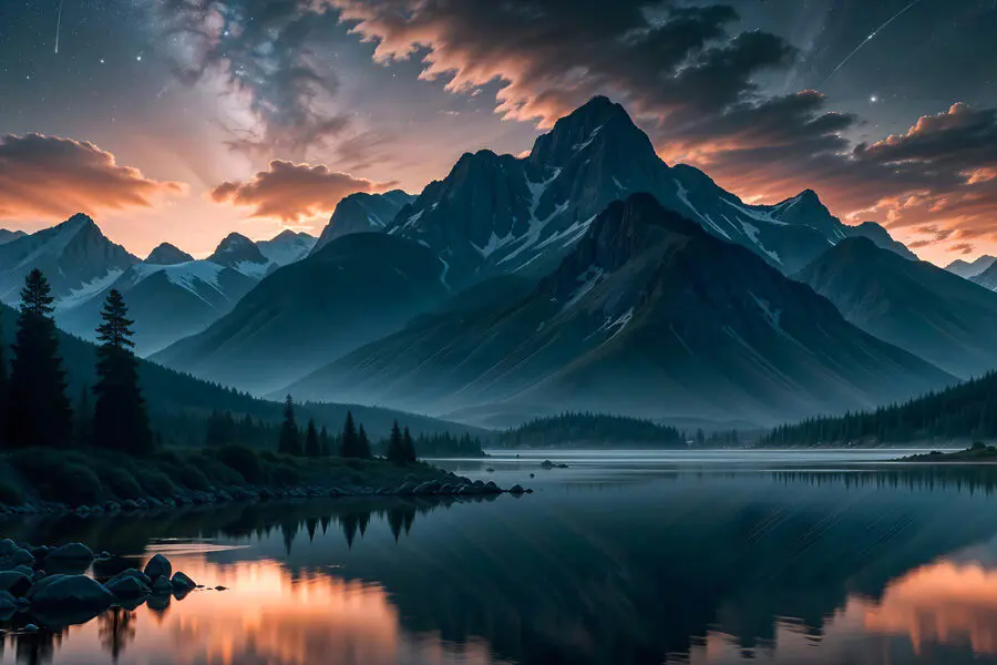 Canvas Schilderijen Meer met bergen op de achtergrond